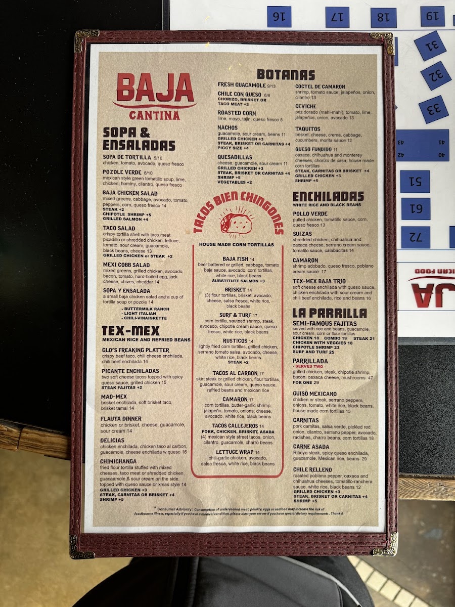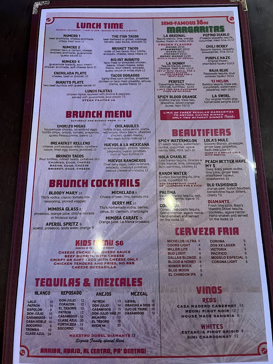 Huge flour tortilla stuffed with black beans, cheese, rice and your choice of steak, chicken or brisket. With salsa fresca, sour cream, guacamole and queso sauce (no sides here)